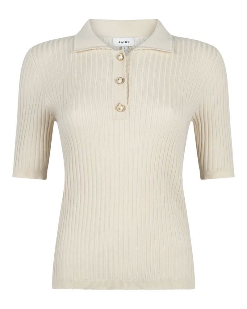 De Aaiko Julia Top VIS 302 is een elegante, fijngebreide polo met een vrouwelijke, aansluitende pasvorm. De geribbelde structuur geeft deze dames top een subtiele, stijlvolle textuur, terwijl de korte mouwen en klassieke polo kraag met knoopsluiting zorgen voor een sportieve, verzorgde uitstraling. Het zachte stretchmateriaal beweegt soepel met je mee en biedt een comfortabel draaggevoel gedurende de dag. Deze veelzijdige top is ideaal te combineren met de Aaiko Esila Broek PU 689 voor een moderne, gestroomlijnde outfit die zowel casual als chique gedragen kan worden. Dankzij het tijdloze ontwerp is de Aaiko Julia Top gemakkelijk te mixen met andere Aaiko kledingitems, waardoor je eindeloos kunt variëren en stijlvolle combinaties creëert. Het aansluitende model benadrukt het silhouet op een elegante manier en maakt het een must-have basisstuk voor elke garderobe. Een perfecte keuze voor dames die houden van moderne, draagbare en veelzijdige kleding met een sportieve touch en een stijlvolle uitstraling.