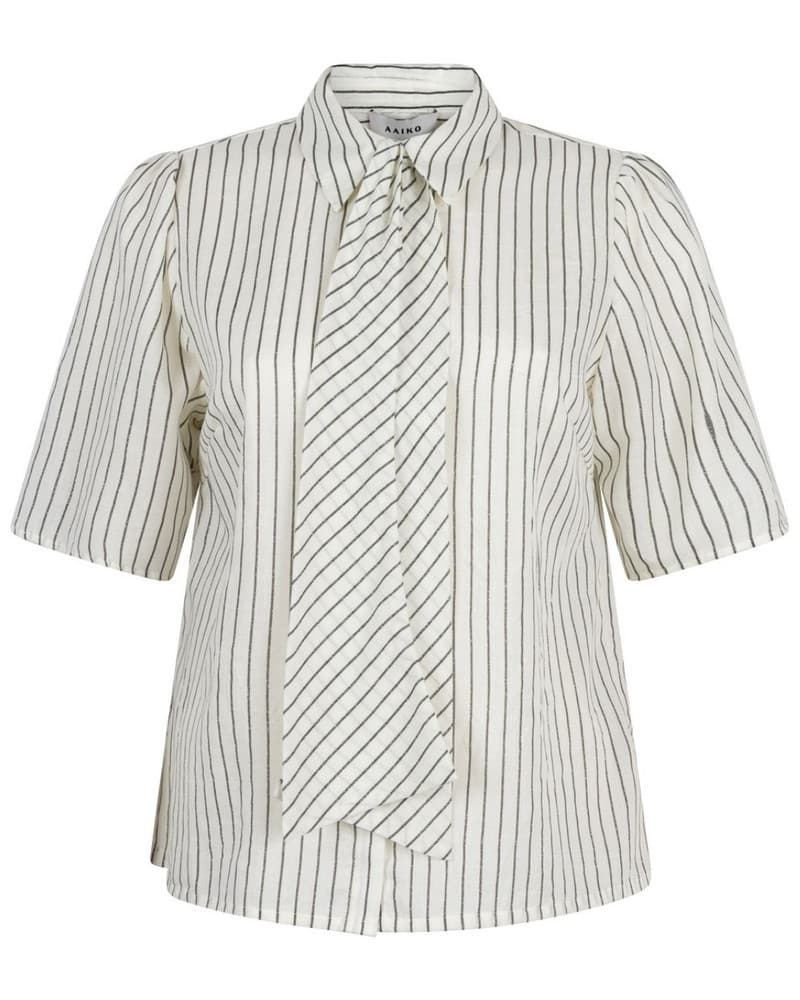 De Aaiko Veronne Stripe Tie PES 351 blouse geeft een frisse en vrouwelijke twist aan een klassiek silhouet. Dankzij de rechte pasvorm en korte mouwen heeft deze blouse een moderne, minimalistische uitstraling die moeiteloos past binnen elke garderobe. Het subtiele streeppatroon zorgt voor een tijdloze look, terwijl het strikdetail bij de hals een speelse en elegante touch toevoegt. Deze Aiko blouse is veelzijdig en eenvoudig te combineren, waardoor je hem zowel casual als gekleed kunt dragen. Combineer met een nette pantalon voor een verzorgde outfit of draag hem op een jeans voor een meer ontspannen stijl. Perfect voor zowel werk als vrije tijd. Zoals je gewend bent van Aaiko, staat ook deze dames blouse garant voor comfort en kwaliteit, met een lichte stof die prettig draagt gedurende de dag. Een ideale keuze voor wie houdt van stijlvolle en makkelijk te combineren damesmode.