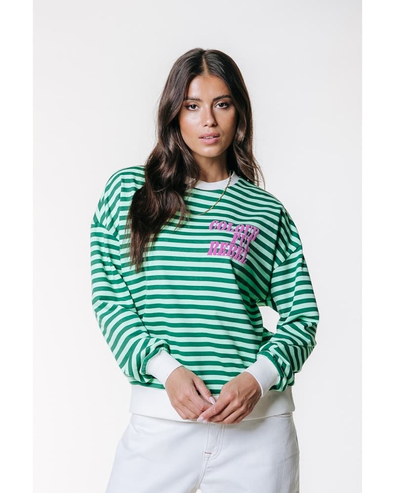 Colourful RebelWS417643 Contrast Cuff Sweat Groen