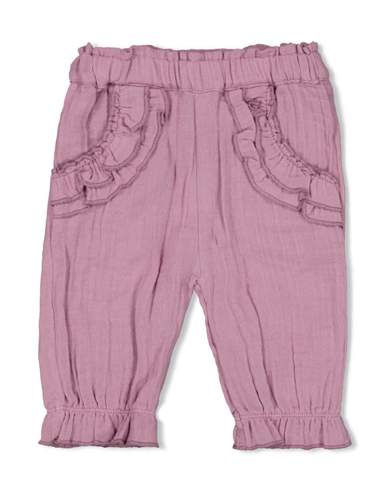 De Feetje broek mousseline Flower Ranch paars is een zachte en luchtige broek voor baby’s. Een comfortabele broek die ideaal is voor kruipen, spelen en dagelijkse avonturen. Dankzij de elastische tailleband zit deze broek prettig en biedt hij genoeg bewegingsvrijheid voor je kleintje om vrij rond te bewegen. Deze Feetje broek mousseline Flower Ranch paars laat zich makkelijk combineren met een longsleeve, T‑shirt of sweater uit de collectie voor een complete en comfortabele look.
