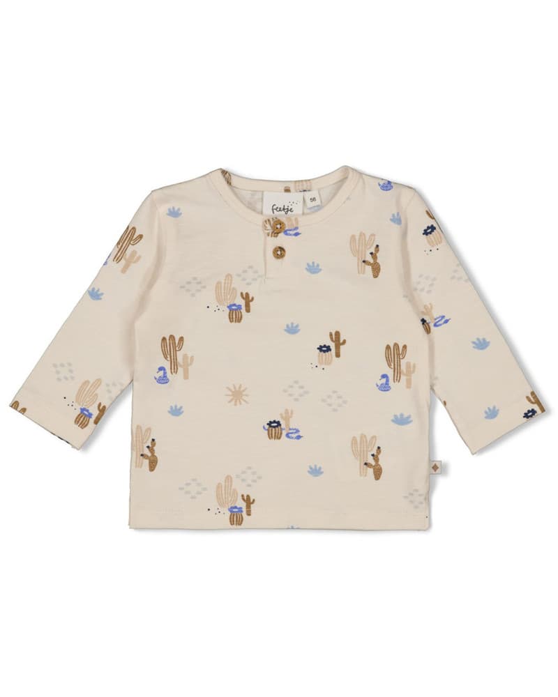 De Feetje longsleeve AOP SSSiesta ecru is een zachte en comfortabele longsleeve voor baby’s die je kleintje een frisse en vrolijke look geeft. De all‑over print zorgt voor speelse details zonder te overheersen en maakt deze longsleeve een leuke basis voor dagelijks draagplezier. Deze longsleeve biedt genoeg bewegingsvrijheid voor kruipen, spelen of knuffelmomentjes. Deze Feetje longsleeve AOP SSSiesta ecru is eenvoudig te combineren met een legging, broekje of short voor een complete outfit. De frisse print en neutrale basis maken het makkelijk om steeds weer een nieuwe look te creëren die bij jouw kleintje past. Met deze Feetje longsleeve geef je je baby een veelzijdig en stijlvol item dat perfect aansluit op dagelijkse avonturen en speelse momenten.