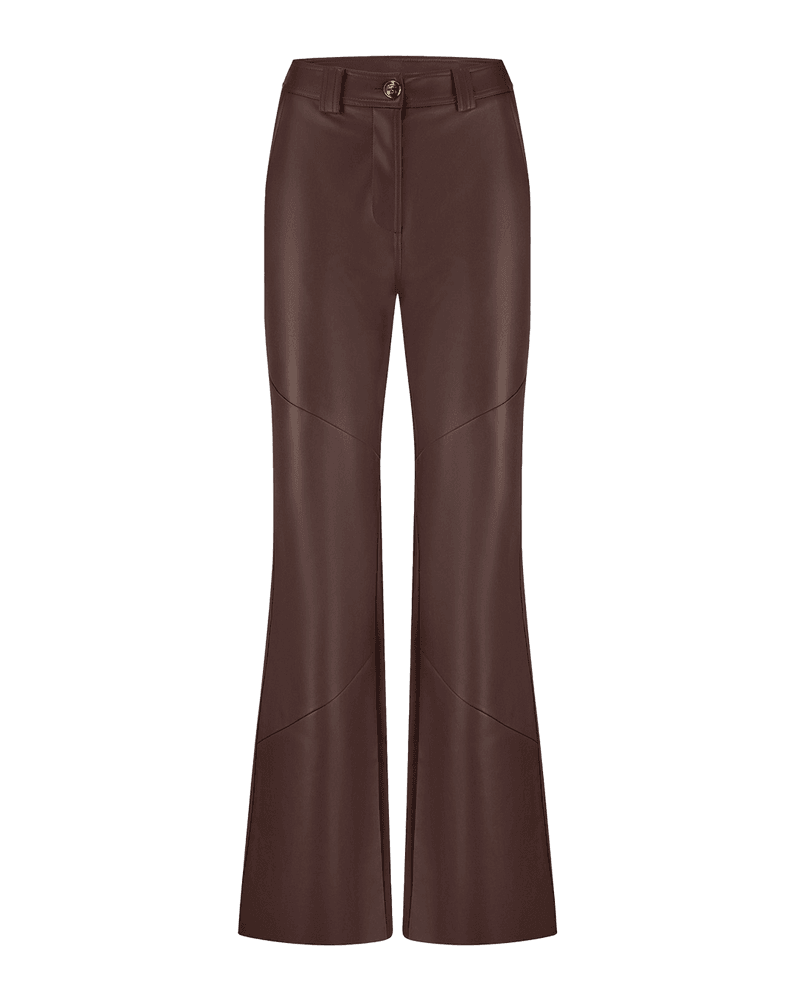 De Jessy flared pants van Fifth House zijn een stijlvolle en veelzijdige toevoeging aan je garderobe. Deze broek van imitatieleer heeft een middelhoog taille en een elegante flared pasvorm, wat zorgt voor een moderne en vrouwelijke look.