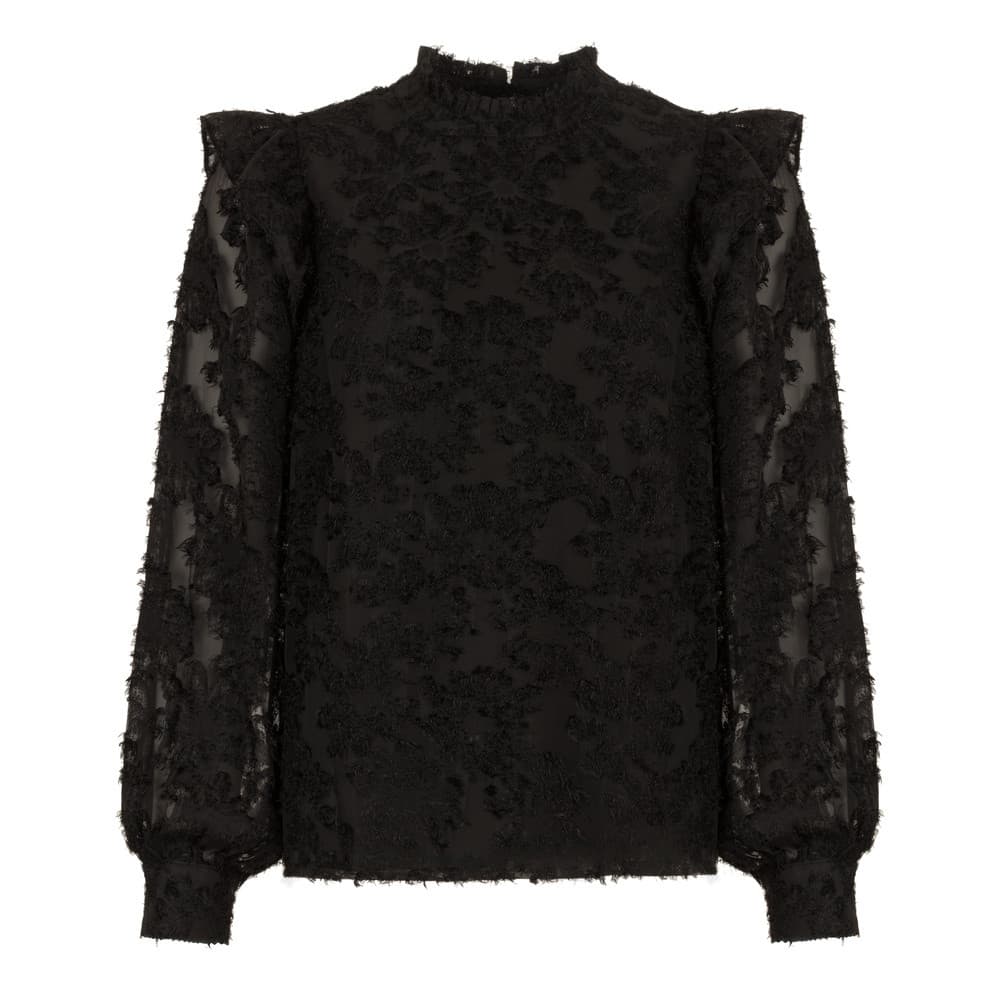 De Bambie Blouse Black van Freebird combineert elegantie met een eigentijdse twist. Gemaakt van zachte polyesterstof met subtiele haartjes, heeft deze blouse een rijke textuur en een luxe uitstraling. Het opstaande kraagje en de ruffle-details op de schouders geven een vrouwelijke touch, terwijl de transparante mouwen een luchtig contrast vormen met het gestructureerde lijfje.