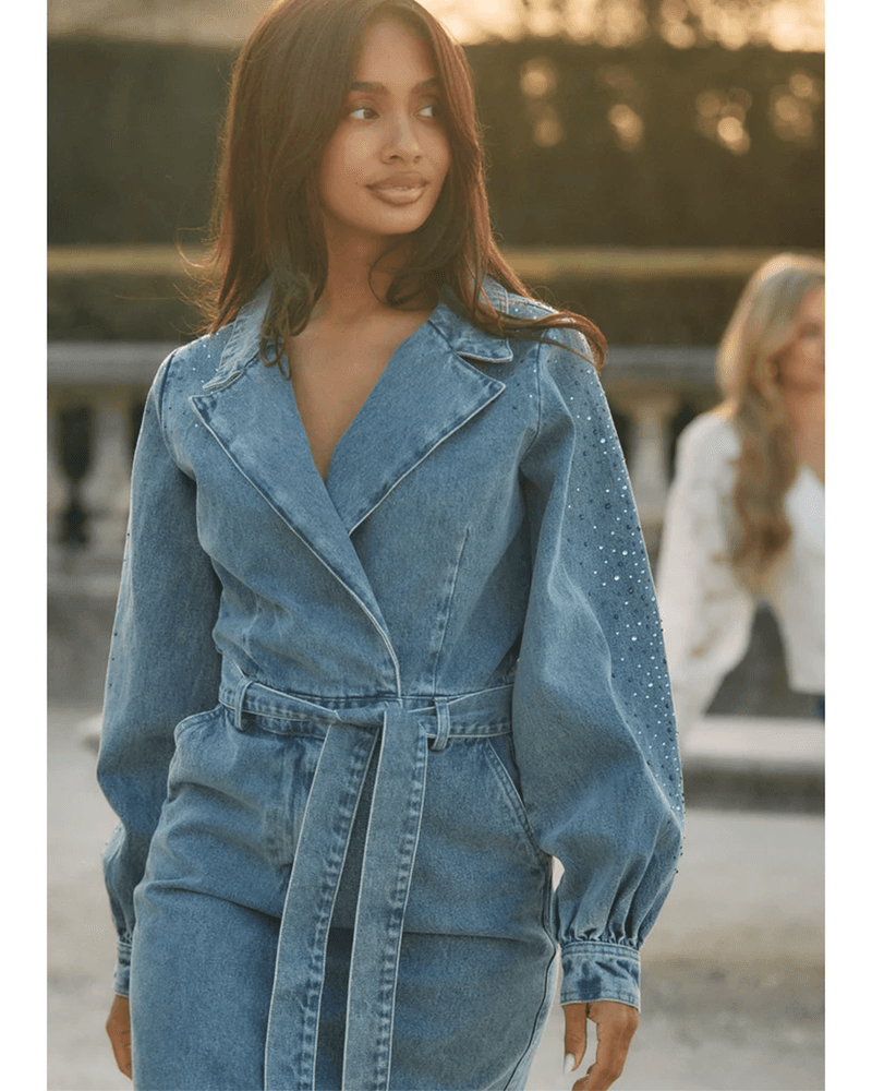 De Freebird Doraline Dress in Blue Wash is een stijlvolle denim overslagjurk die comfort en vrouwelijkheid moeiteloos combineert. Gemaakt van 100% katoen zonder stretch voelt de jurk zacht en soepel aan, terwijl de strikceintuur in de taille zorgt voor een flatterend silhouet. De subtiele twee kleurige strassstenen op de mouwen geven een glinsterend accent en maken de jurk net dat beetje extra bijzonder.