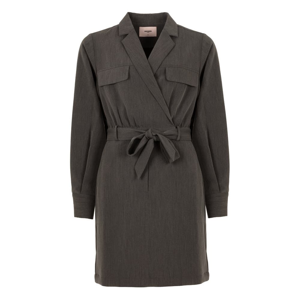 Dankzij de strikceintuur kan de taille geaccentueerd worden, waardoor er een flatterend silhouet ontstaat dat zowel tijdloos als modern oogt. Of je nu een lange werkdag hebt of een avond uit plant, met de Doraline Dress Dark Grey ben je altijd stijlvol gekleed. Het model is 175cm en draagt een 36.