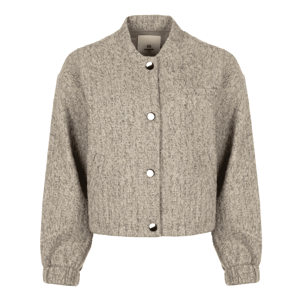 Het Lola jacket in Silver Grey van Freebird Icons is een cropped bomberjack dat elke outfit direct een stijlvolle upgrade geeft. De zachte, luxe stof is verweven met subtiele zilveren en gouden lurexdraden, waardoor het klassieke silhouet een glinsterende, moderne touch krijgt.
