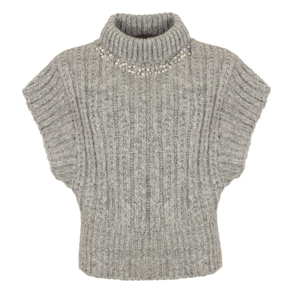 De Kalista Spencer van Freebird is een eigentijdse, mouwloze knit die stijl en comfort moeiteloos combineert. Gemaakt van een zachte, hairy garenmix voelt de spencer warm en luxueus aan. De parel- en steendecoratie langs de halslijn geeft een verfijnde, vrouwelijke touch aan het grovere breisel. Met de hoge col en geribde structuur heeft de spencer een moderne, ingetogen uitstraling.