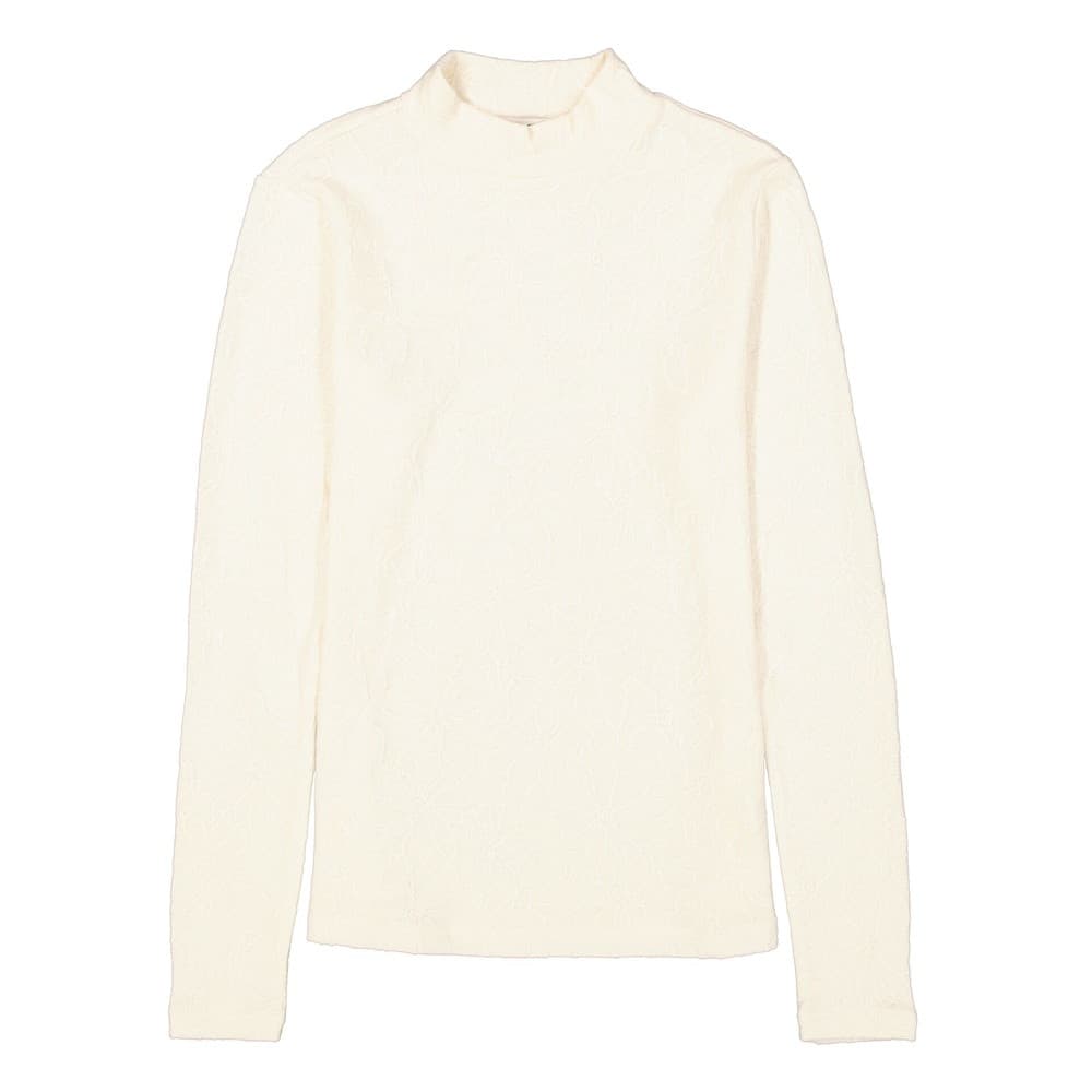 De Garcia i 50210 4294 is een gebroken witte longsleeve met een jacquardstructuur, die zorgt voor een subtiele textuur en een verfijnde uitstraling. Het kledingstuk heeft een mock hals, lange mouwen en een regular fit, wat bijdraagt aan zowel comfort als stijl. Gemaakt van een mix van 40% katoen, 38% polyester, 17% viscose en 5% polyamide, biedt het een zachte en ademende draagervaring. Deze veelzijdige top is ideaal voor zowel casual als iets formelere gelegenheden en kan gemakkelijk gecombineerd worden met diverse outfits. Het model is 177cm en draagt een 36.