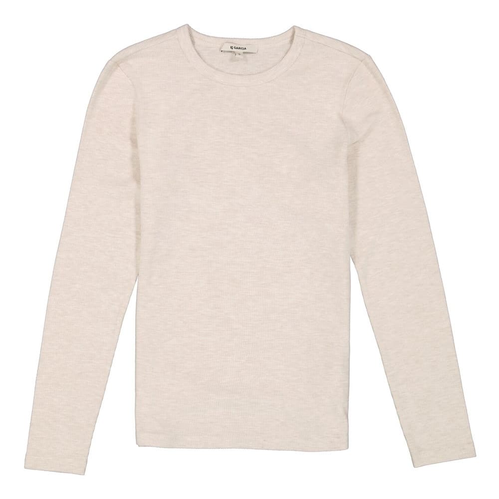 De Garcia J 50019 2533 is een beige longsleeve van ribstof met een ronde hals en lange mouwen. Het kledingstuk heeft een slim fit, waardoor het mooi aansluit op de vrouwelijke vormen. Gemaakt van 54% viscose, 36% gerecycled polyester en 10% elastaan, biedt het een comfortabele en flexibele pasvorm. Deze top is ideaal voor een casual look en kan gemakkelijk gecombineerd worden met diverse outfits. Het model is 178cm en draagt een 36.