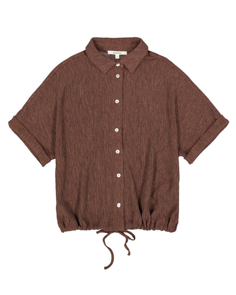 De Garcia P260239 Ladies Shirt is een stijlvolle blouse van crinkle stof met een ontspannen, casual uitstraling. Deze dames blouse heeft een klassiek kraagje, korte mouwen en een relaxed fit die heerlijk zit en eenvoudig te combineren is met een jeans of pantalon voor een moderne everyday look. Ook is deze dames top leuk te combineren met de Garcia P260345 Ladies Short. Dankzij de crinkle structuur krijgt deze Garcia blouse een speels en interessant detail, terwijl de zachte stof zorgt voor een prettig draaggevoel gedurende de dag. Deze Garcia blouse is een perfecte basis voor zowel casual als iets nettere combinaties, waardoor hij een echte must-have is voor iedere garderobe.