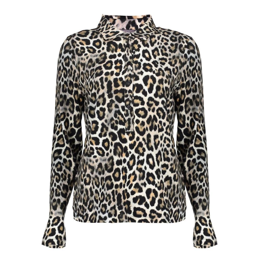 Voeg een gedurfde en stijlvolle touch toe aan je garderobe met deze Geisha dames jersey blouse in een opvallende zwart-zand leopard print. Het aangesloten model met klassieke kraag en lange mouwen geeft een elegante uitstraling, terwijl de jersey stof zorgt voor een comfortabele pasvorm. De volledige doorknoopsluiting maakt het gemakkelijk om de blouse aan en uit te trekken.