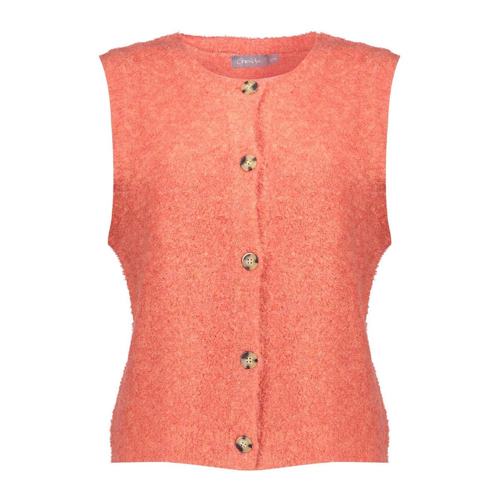 De Geisha Spencer Boucle is een stijlvol en veelzijdig mouwloos gilet met een warme uitstraling. Gemaakt van een prachtige bouclé-structuur, heeft deze Geisha spencer een luxe en zachte feel. De opvallende, maar smaakvolle knopen dragen bij aan de karakteristieke look en geven het geheel een klassieke, chique afwerking. Dankzij de heldere oranje kleur springt het gilet er ook nog eens uit, waarmee je je look direct extra warmte en energie geeft. Draag deze Geisha Spencer Boucle Oranje over een blouse of coltrui om je outfit een modieuze en textuurrijke twist te geven.