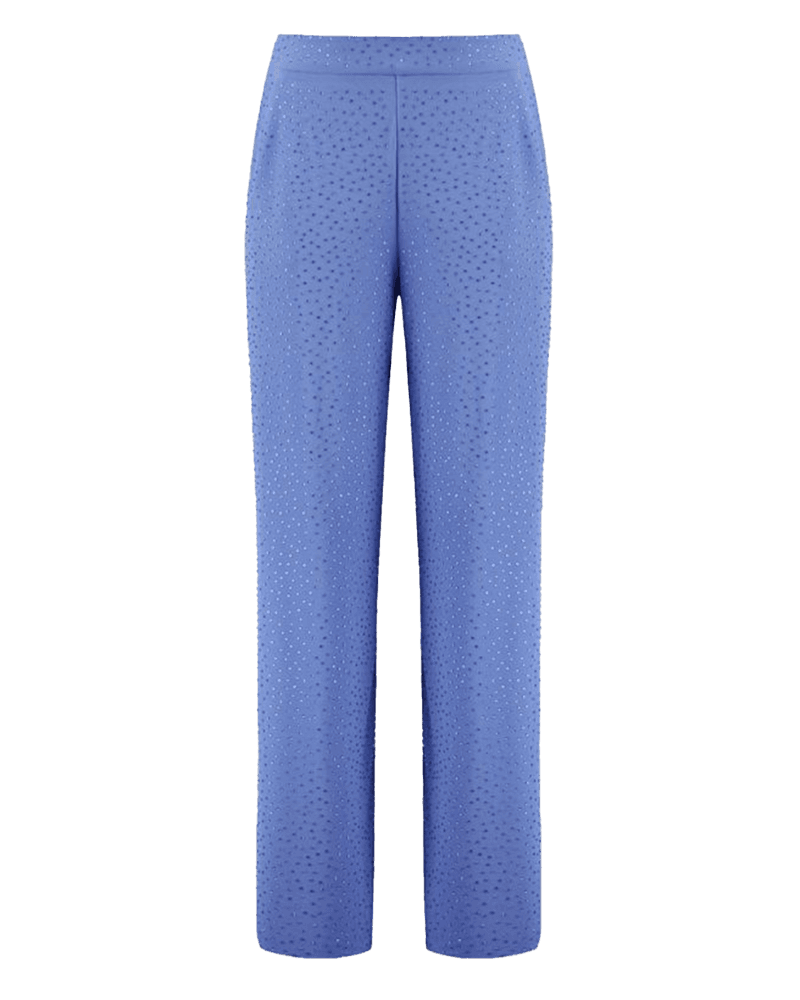 Of je nu kiest voor een casual look met sneakers en een trui, of een feestelijke outfit met hakken en een blouse. De HOLLY pants past zich aan jouw mood aan. De subtiele glans en frisse blauwe tint geven de broek een moderne, vrouwelijke uitstraling die perfect past bij het seizoen.