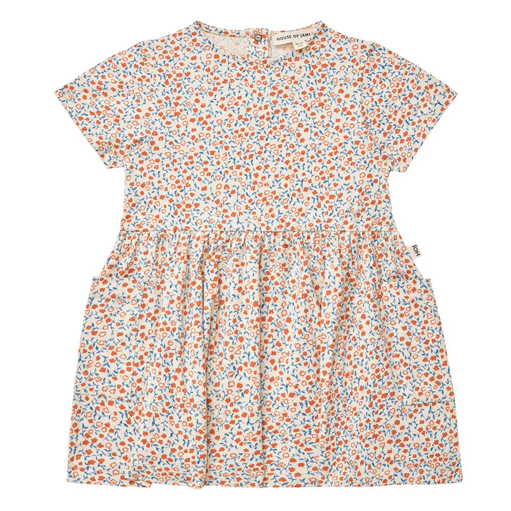 House of JamieRelaxed Pocket Dress Floral AOP Peach Shortsleeve Multi