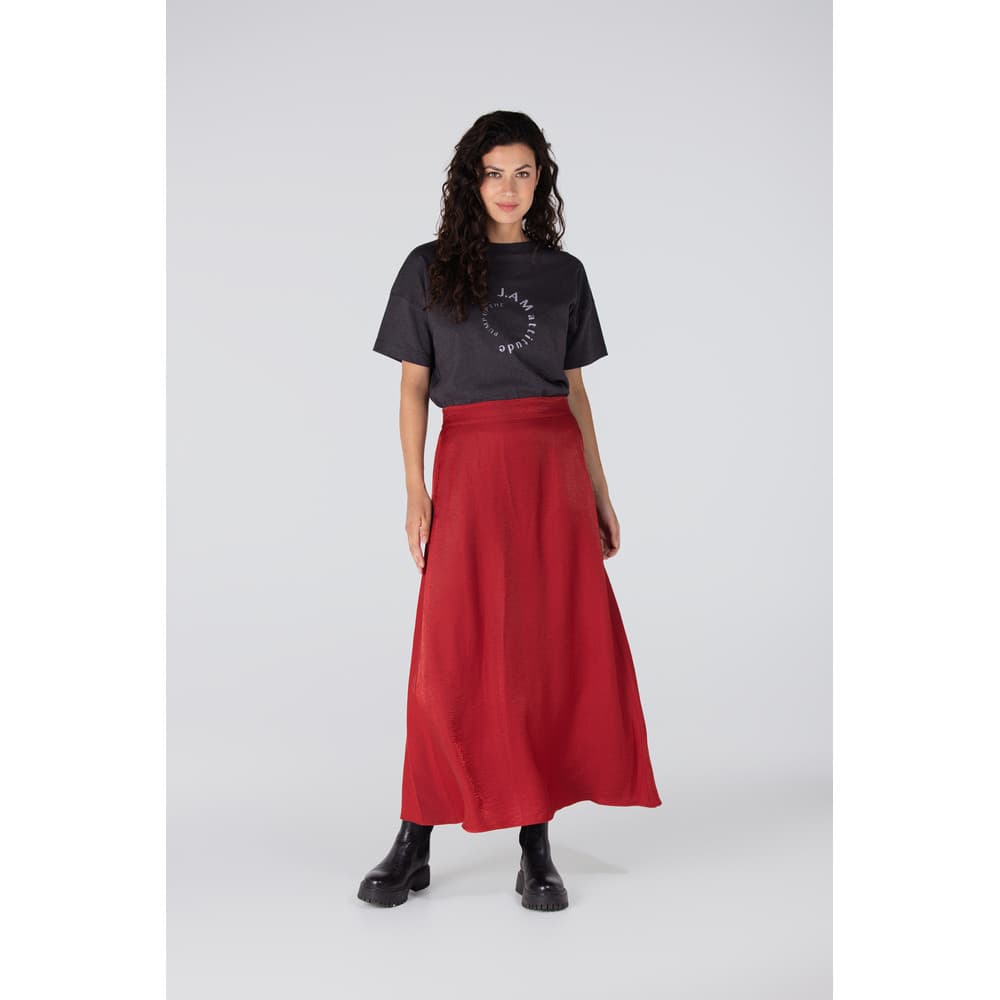De Dahlia rok van Jansen Amsterdam combineert moeiteloos elegantie met comfort. Het wijde model en de luxe glanzende cayennekleurige stof geven deze rok een chique, opvallende uitstraling, terwijl de soepele pasvorm zorgt dat hij heerlijk draagt.