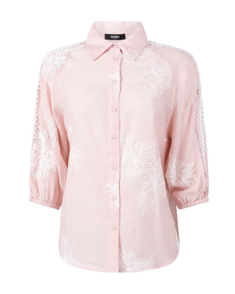 Jansen AmsterdamRAELLA BLOUSE AE 701 3/4 sleeve embroidery Roze