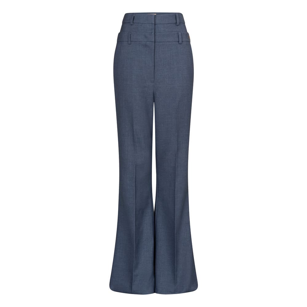 Maak kennis met de JOSH V Liora Trousers in de kleur Blue Chambray – een elegante broek die stijl, comfort en kwaliteit perfect combineert. Deze high waisted pantalon met flared pijpen heeft een flatterende pasvorm die de vrouwelijke vormen prachtig accentueert. De broek is vervaardigd uit een gemêleerde stof van gerecycled polyester, wol en stretch, wat zorgt voor een luxueuze uitstraling en optimaal draagcomfort.