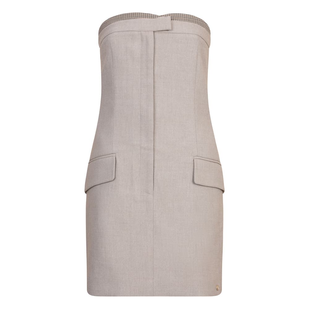De JOSH V Ruby jurk in de kleur Warm Grey is een elegante en veelzijdige toevoeging aan je garderobe. Deze getailleerde jurk is ontworpen met een comfortabele mix van gerecycled polyester, viscose en stretch, waardoor hij zowel stijlvol als aangenaam om te dragen is.