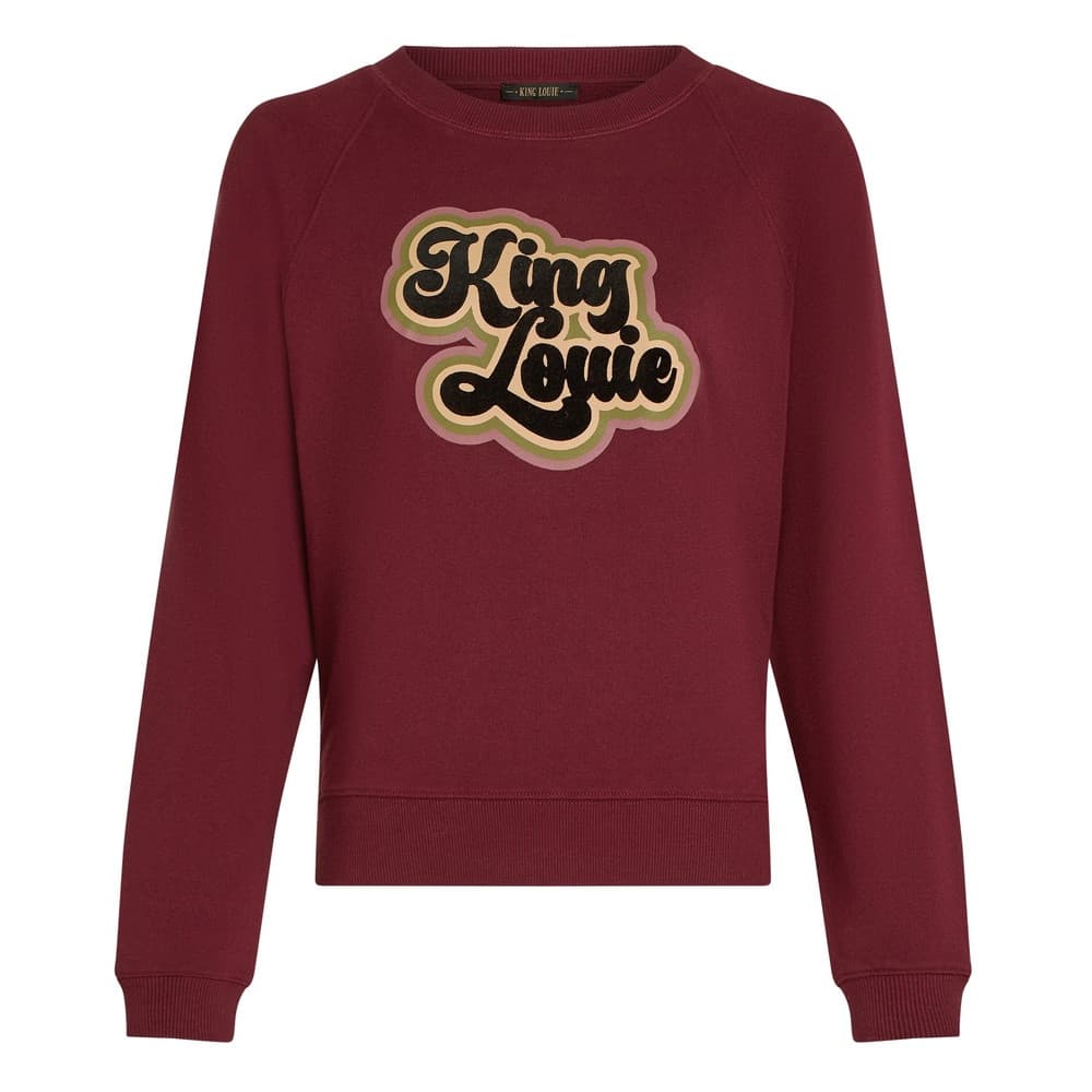 Op de voorkant prijkt een opvallende "King Louie" print, die de trui een speelse en eigentijdse touch geeft. De diepe cabernet rode kleur maakt het een veelzijdig stuk dat zowel casual als gekleed gedragen kan worden.