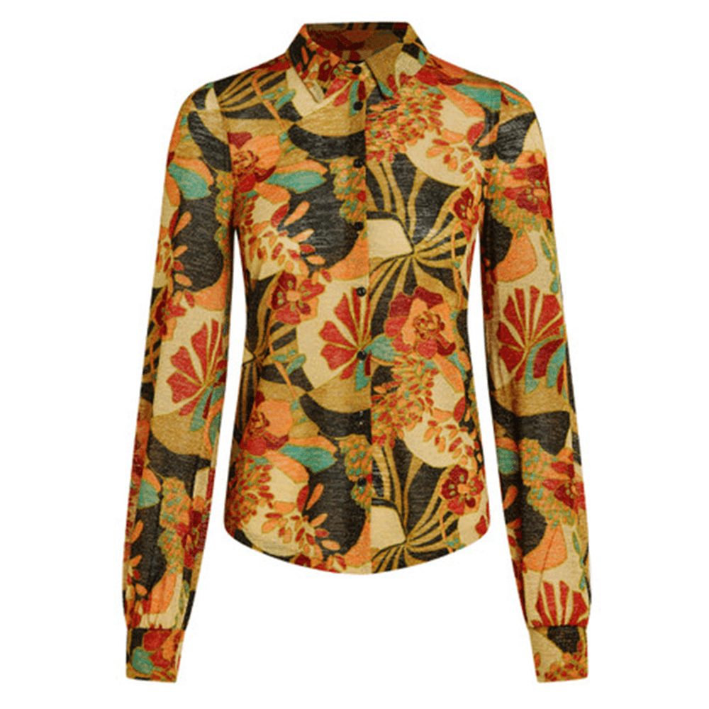 Met zijn klassieke kraag, lange mouwen en doorknoopsluiting is deze blouse zowel elegant als veelzijdig. De fijne bloemenprint geeft een speelse touch aan de verder tijdloze snit, waardoor je de blouse eenvoudig combineert met een nette broek, rok of juist je favoriete jeans.
