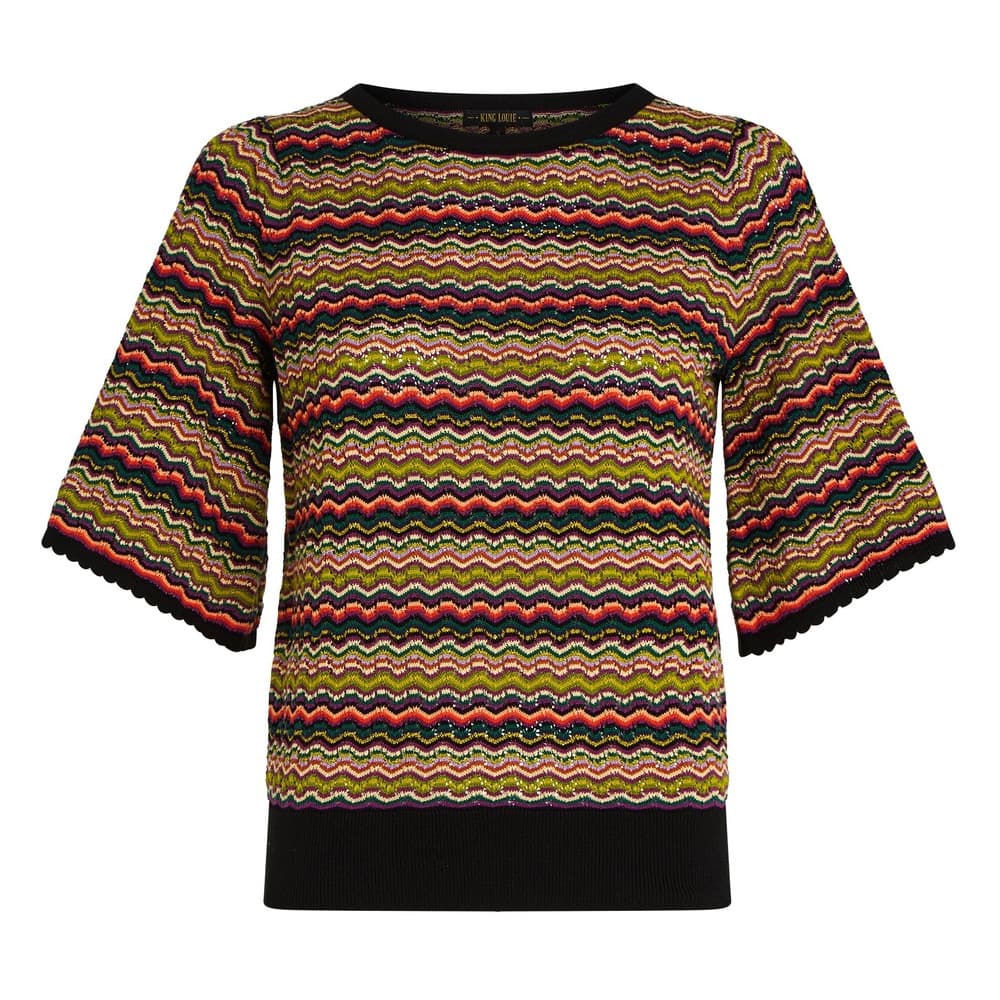 De Maree Top Meisel van King Louie is een elegante en comfortabele top, perfect voor zowel dagelijks gebruik als speciale gelegenheden. Gemaakt van rekbaar katoen-lurex gebreid materiaal, voelt de top zacht aan op de huid en biedt voldoende stretch voor een optimale pasvorm. Het verfijnde zigzagpatroon geeft een subtiele, speelse twist aan het ontwerp, terwijl de halflange mouwen en de klassieke ronde hals zorgen voor een tijdloze uitstraling.