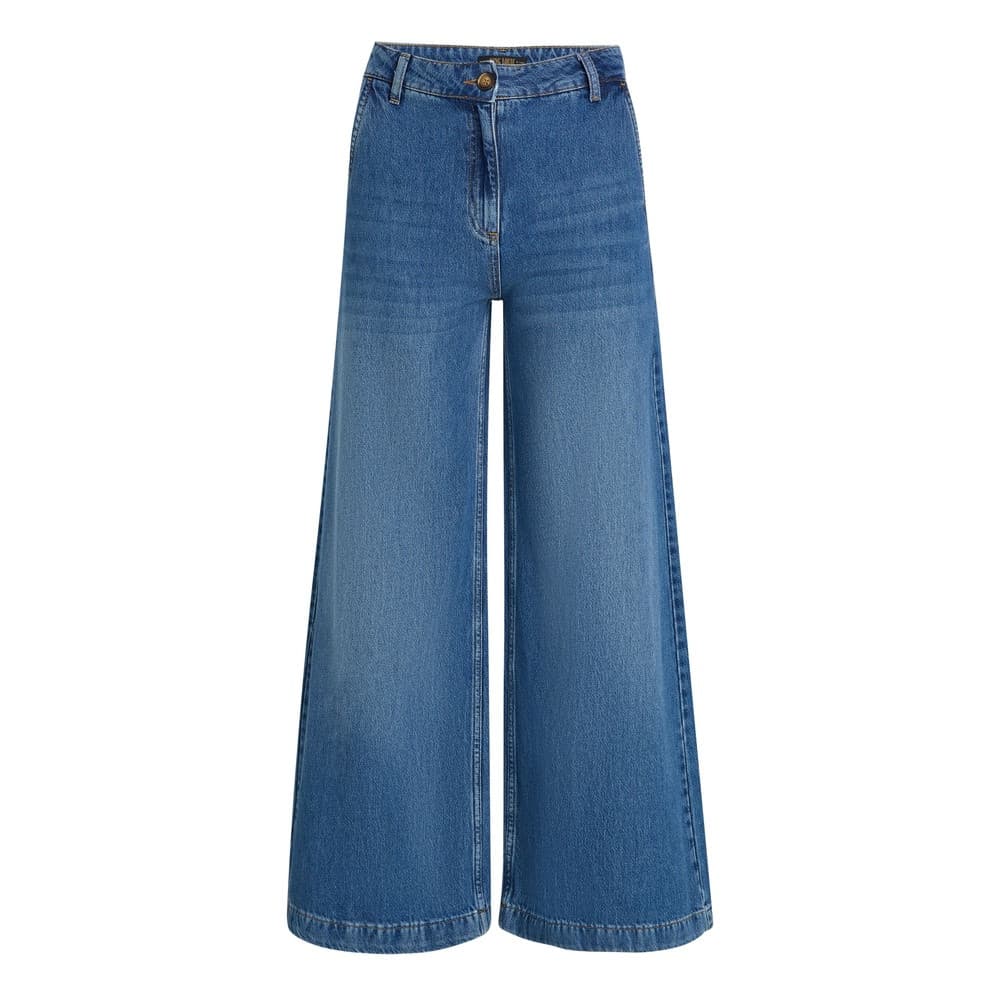 De Peppa Pants Stone Denim in Blue Tint zijn de perfecte mix van retro flair en moderne elegantie. Deze stijlvolle broek van King Louie heeft een hoge taille, aangesloten pasvorm bij de heupen en loopt wijd uit naar beneden, ideaal voor een flatterend silhouet met een vleugje seventies.