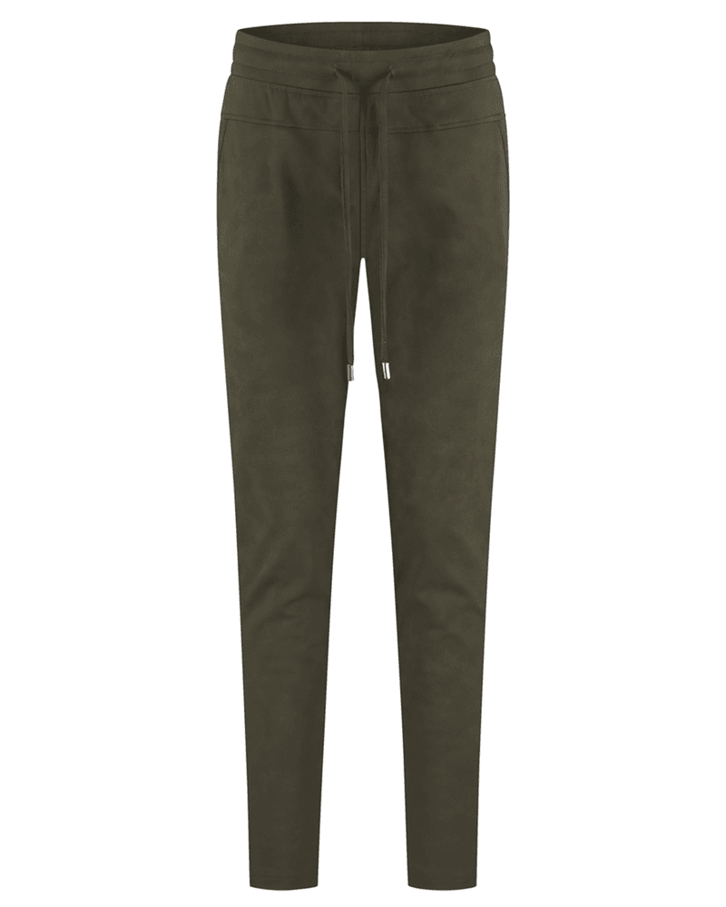 De broek is uitgevoerd in een zachte brushed kwaliteit – een dikkere stof met een geborstelde binnenkant. Dit geeft de Phoebe niet alleen een luxe uitstraling, maar ook een heerlijk zacht gevoel op de huid. De steekzakken aan de voorkant en sierpaspelzakken aan de achterkant voegen subtiele details toe die het geheel een verzorgde uitstraling geven.