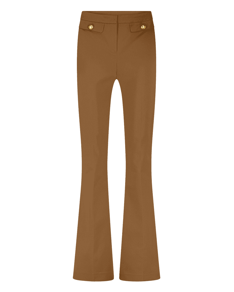 De twee klepzakken met subtiele knoopdetails voegen een verfijnd accent toe, terwijl het effen design de broek veelzijdig maakt. Perfect te combineren met een blouse, top of trui voor zowel casual als chique looks. De binnenbeenlengte is 84cm.