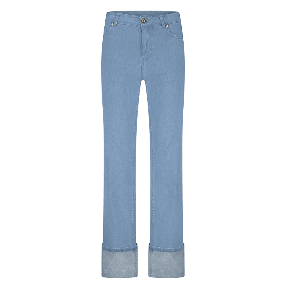 Jeans met een omslagrand met N-logo, zakken en een middelhoge taille. De jeans heeft een rits- en knoopsluiting, rechte pijpen en veel stretch. De omgeslagen broekspijpen zijn voorzien van het NIKKIE logo.
