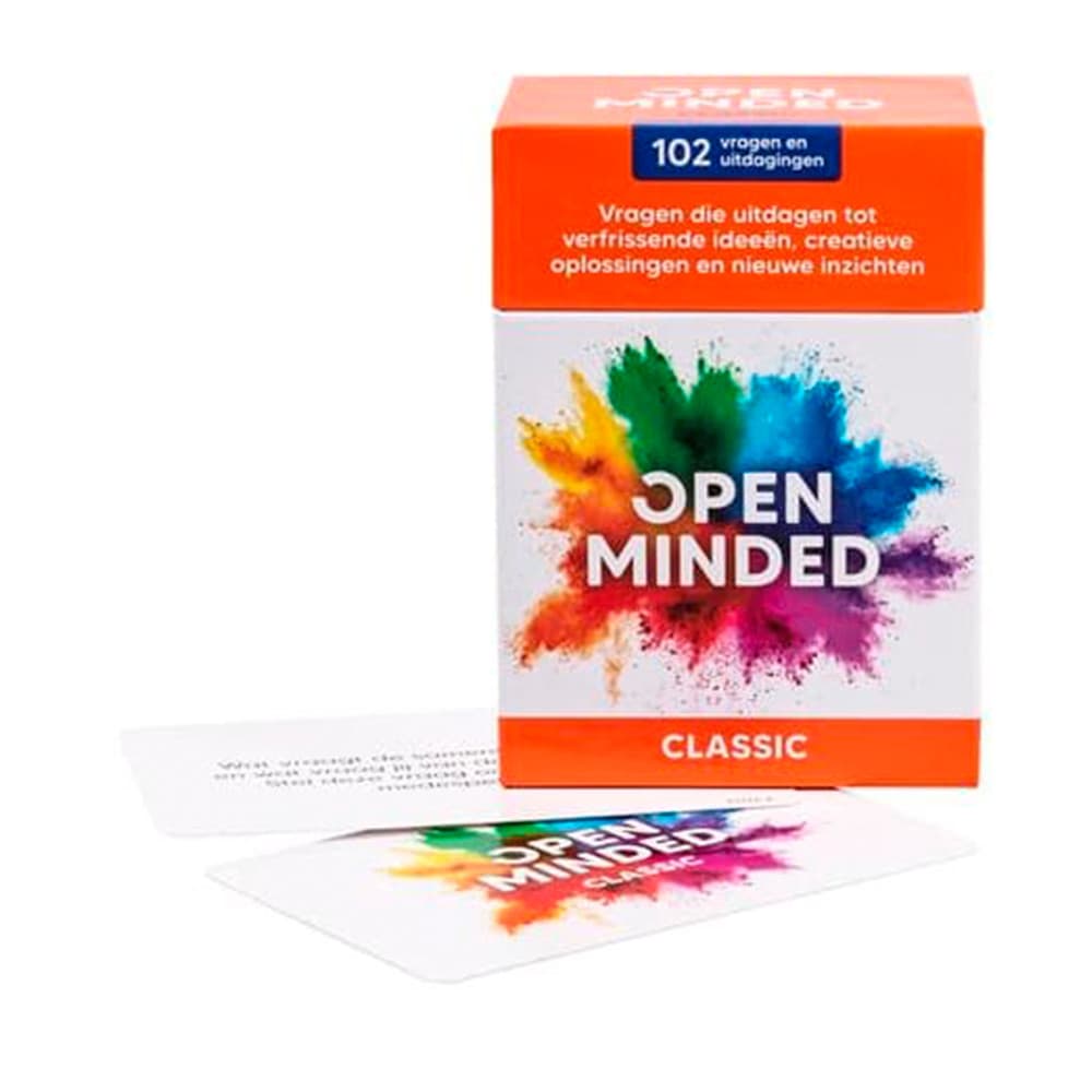 Openhartig kaartspel, dé gesprekspartner voor waardevolle momenten. Deze Classic Open Minded editie bevat 102 filosofische, maatschappelijke en creatieve vragen en uitdagingen.