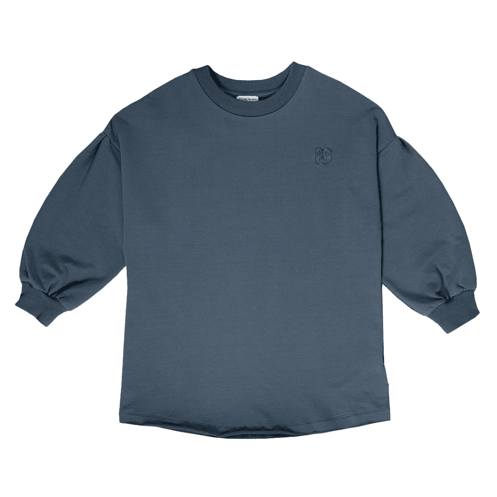Laat je meisje stralen in de Sweater Dress Iconic in Stormy Weather van Petit Blush. Deze jurk in een diepe grijsblauwe tint combineert moeiteloos stijl en comfort, waardoor het een ideale keuze is voor koelere dagen. De ballonmouwen voegen een speelse flair toe, terwijl het grote 'ICONIC'-logo op de rug een gedurfde statement maakt.