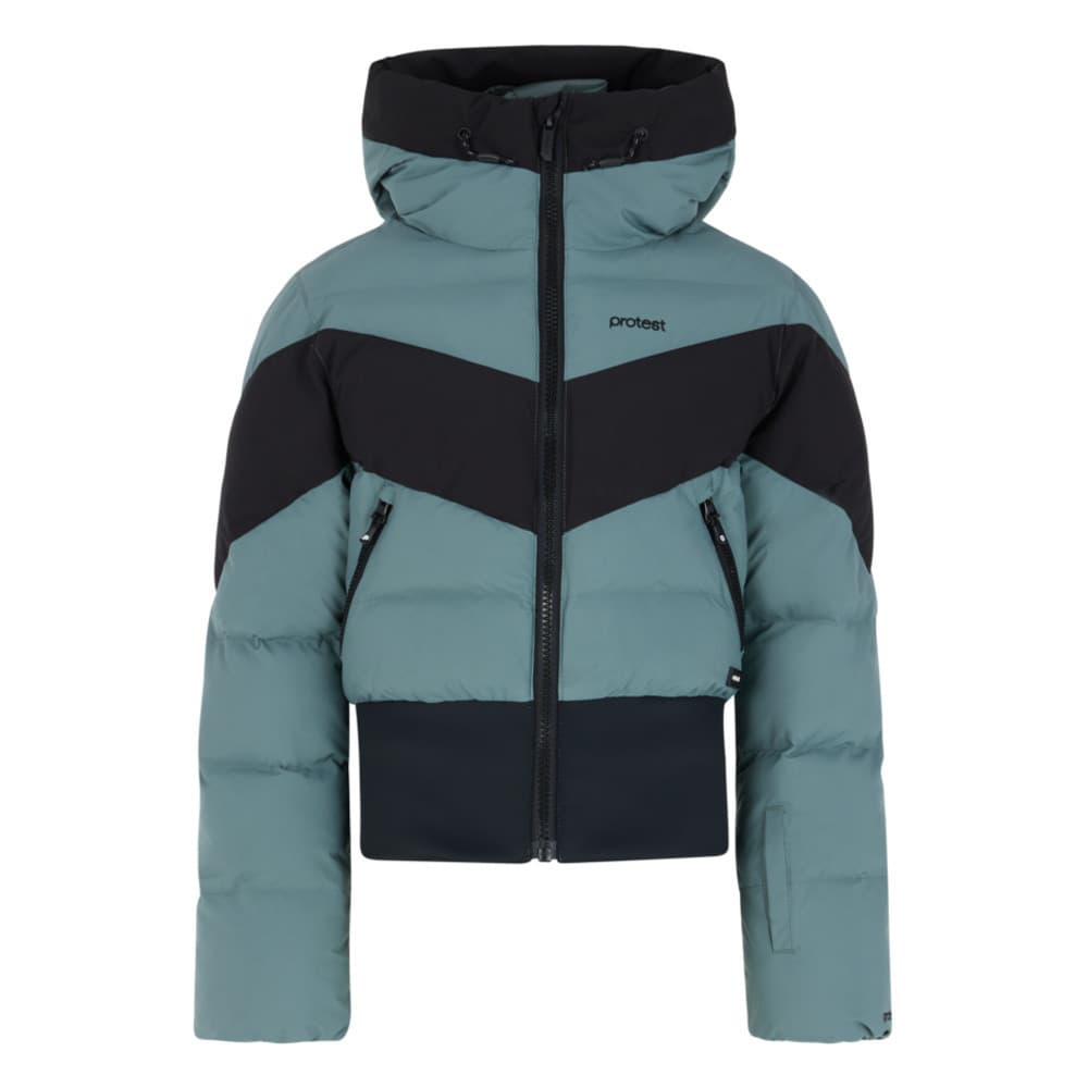 De Protest PRTMILOU JR Ski Jas in Evergreen valt direct op dankzij het opvallende zigzagpatroon en het slim fit design. Met een normale lengte biedt deze jas een moderne, sportieve uitstraling en voldoende bewegingsvrijheid voor jonge wintersporters.