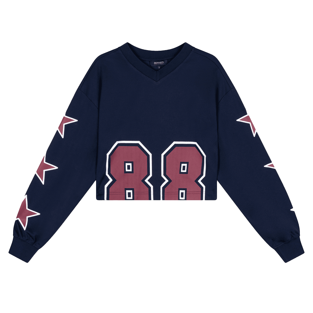 Dit cropped hockey Ulla T-shirt van Refined Department geeft jouw outfit een sportieve en modieuze uitstraling. Het ontwerp is gemaakt van een luchtige, sportieve stof die comfortabel draagt en perfect aansluit bij de hockey-geïnspireerde look. De V-hals met ribboord en de ribmanchetten zorgen voor een klassieke sporty touch, terwijl de artworks op de voor- en achterkant én de mouwen het shirt een unieke en opvallende uitstraling geven. Dankzij de oversized pasvorm oogt het item stoer en nonchalant, ideaal om te combineren met een high-waist jeans, rok of short voor een trendy streetstyle look. Het model is 174cm en draagt een 36.