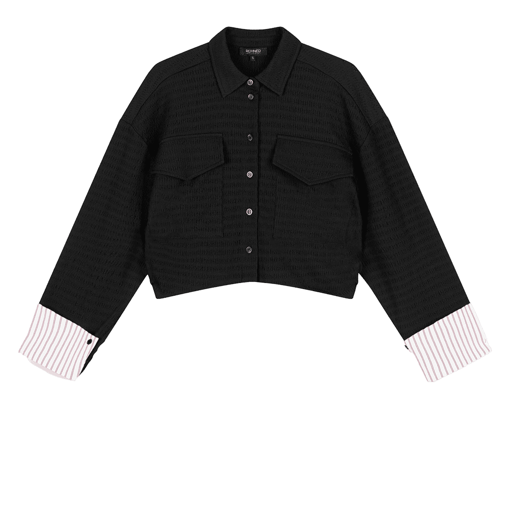 Deze cropped Lyloe blouse van Refined Department combineert een oversized pasvorm met een moderne, gestructureerde look. Het rekbare materiaal met gebreide textuur voelt zacht aan en zorgt voor een comfortabele fit. Met de klassieke kraag, volledige knoopsluiting en twee borstzakken krijgt de blouse een tijdloos, verfijnd detail. Draag hem casual met jeans of match met de MARA pants voor een complete, stijlvolle co-ord look. Het model si 174cm en draagt een 36.