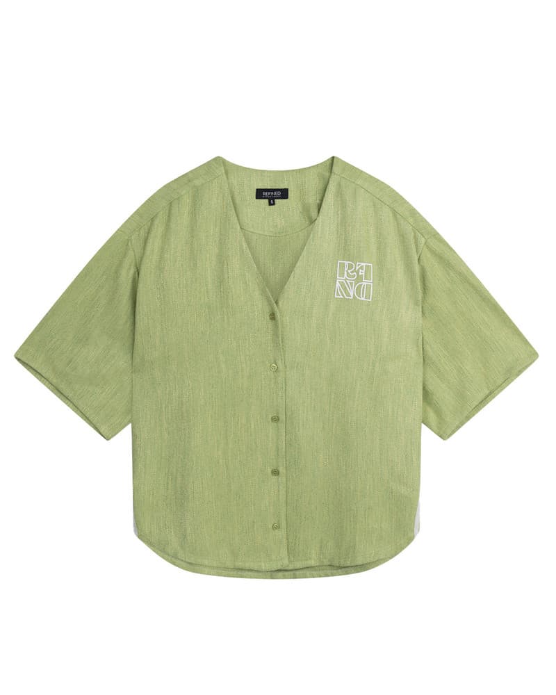 Refined Departmentladies woven oversized baseball shirt BENNIE Groen