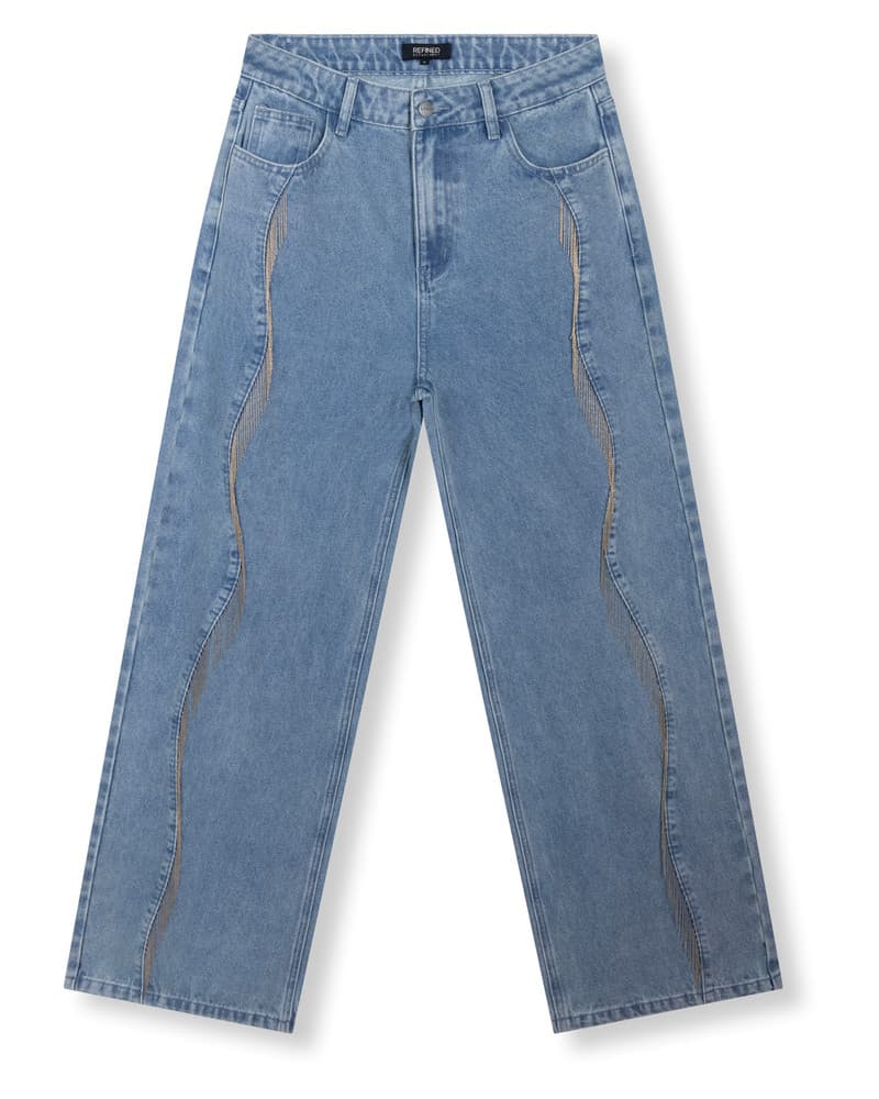 Refined Departmentladies woven relaxed fringes denim pants PAYTON Licht Blauw