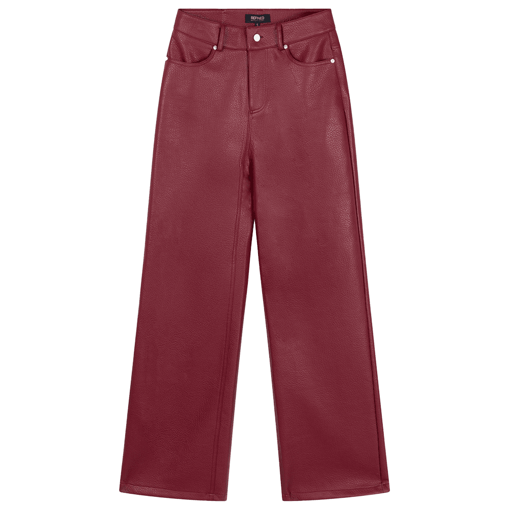 Refined DepartmentLadies Woven Vegan Leather Wide Leg Pants Esmee Bordeaux