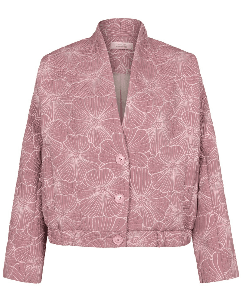 De Estella Jacquard Jacket in Vintage Berry van Studio Anneloes straalt tijdloze elegantie uit met een moderne twist. Het verfijnde jacquardweefsel, subtiel verrijkt met een glanzend metallic effect, geeft iedere beweging een sprankje allure, terwijl de geplooide schouders en de licht elastische taille een vrouwelijk silhouet creƫren dat moeiteloos in balans blijft.