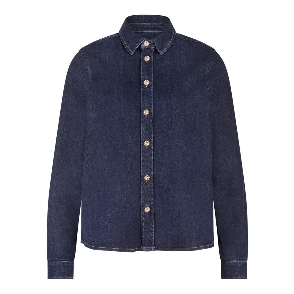 De Reyna Denim Blouse van Studio Anneloes geeft een eigentijdse draai aan een absolute klassieker. De blouse is uitgevoerd in stevig maar soepel denim en heeft een regular fit die comfortabel draagt en mooi aansluit. De rijke denim blauwe tint vormt een veelzijdige basis, terwijl de glanzende gouden knopen het geheel een elegante en vrouwelijke uitstraling geven.