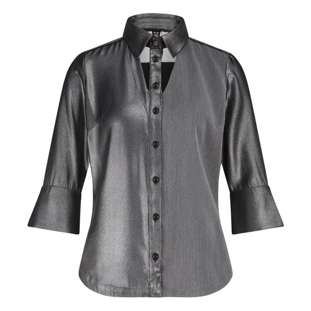 ZIP73Blouse Cut-Out Metallic Grey Zilver