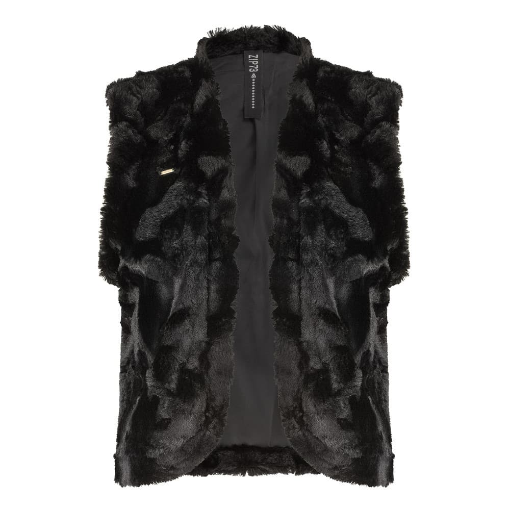 Voeg een vleugje luxe toe aan je outfit met het ZIP73 Gilet Teddy Black. Dit zwarte gilet is gemaakt van heerlijk zacht faux fur en voelt warm en comfortabel aan, terwijl het je look een stijlvolle, moderne uitstraling geeft. Het ontwerp heeft een licht opstaand kraagje in de nek dat zorgt voor extra elegantie en warmte, zonder dat het te zwaar oogt.